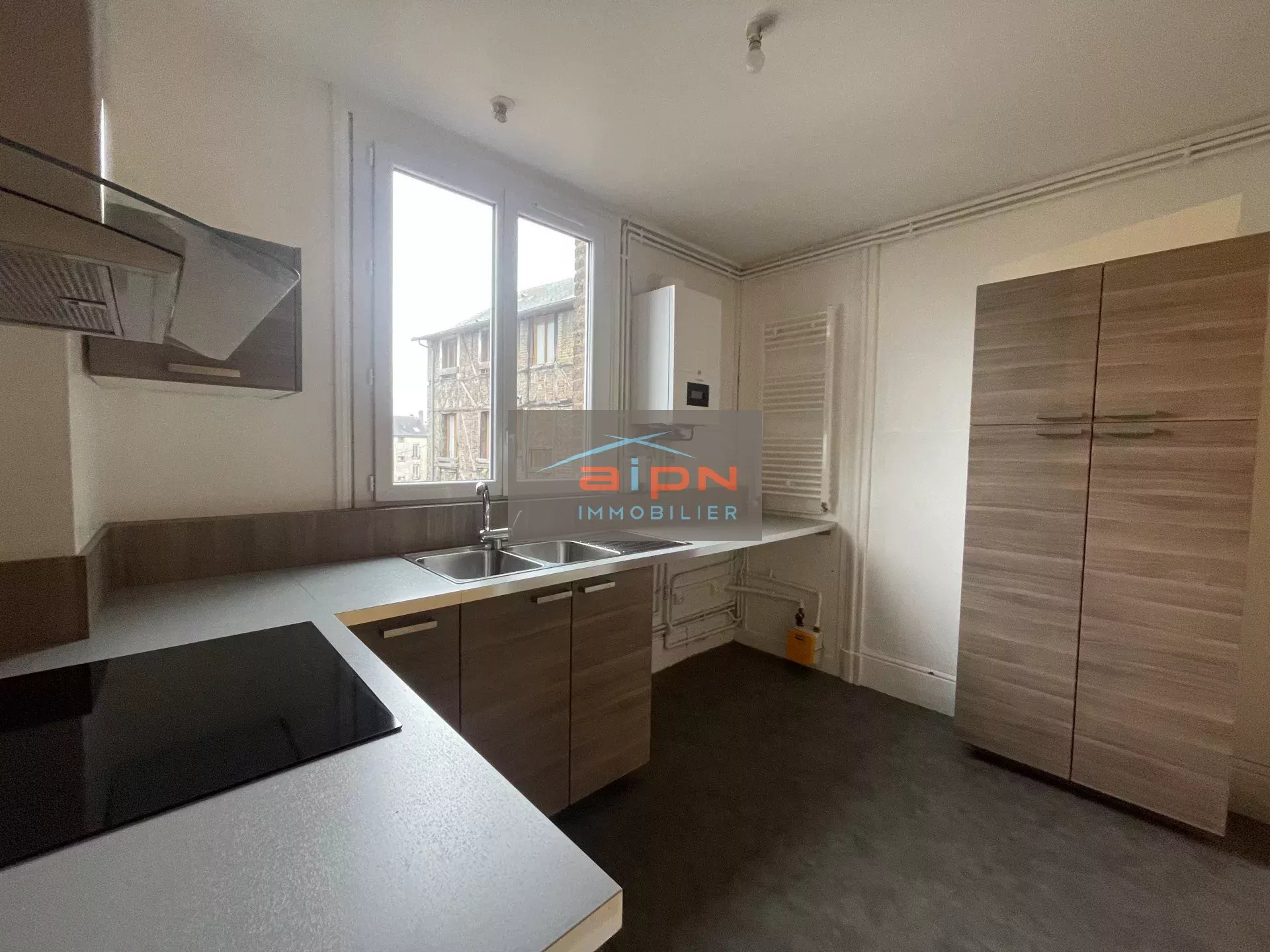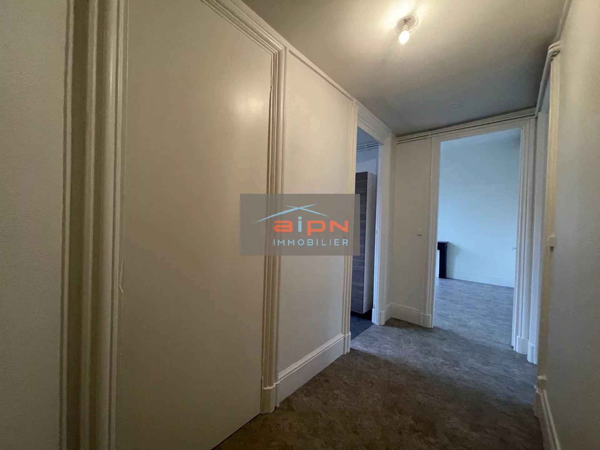 A LOUER - Proche de la Mairie, dans une petite résidence, très bel appartement de 67.79 m2, lumineux, comprenant vaste entrée, cuisine aménagée et équipée (four + plaque + hotte), beau séjour, 2 chambres, salle de douche, WC, chauffage individuel au gaz (chaudière 1 an), nombreux placards.